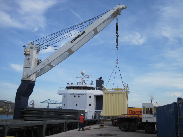 Ships gear was used to load this small consignment for direct shipment to Rio De Janeiro on 30th March 2012. The main piece came out of the fabrication halls at A.V.Dawson Ltd. premises and was constructed by Mechtool.